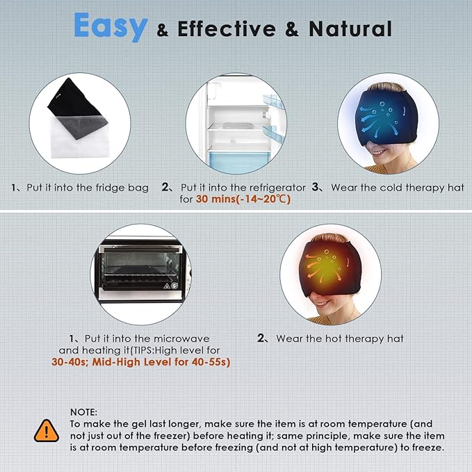 Relieve headaches, migraines, and facial tension with this Reusable & Wearable Gel Ice Pack Headache Relief Hat, designed for soothing cold or hot therapy exactly where you need it. Made with premium solid gel, it stays flexible even when frozen and feels comfortable directly on the skin without excessive pressure. Whether you’re easing migraines, sinus pressure, puffiness, or stress, this wrap-around design provides calming relief while blocking light for deeper relaxation and rest—at home, work, or on the go.